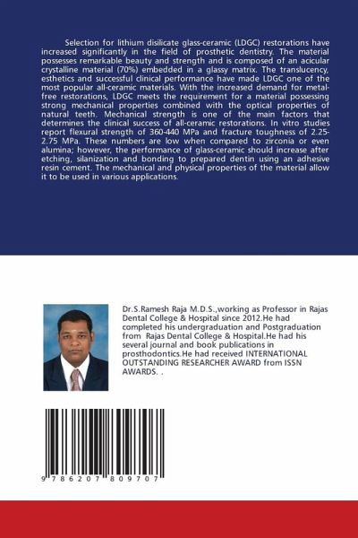 Selection for lithium disilicate glass-ceramic (LDGC) restorations have increased significantly in the field of prosthetic dentistry. The material possesses remarkable beauty and strength and is composed of an acicular crystalline material (70%) embedded in a glassy matrix. The translucency, esthetics and successful clinical performance have made LDGC one of the most popular all-ceramic materials. With the increased demand for metal-free restorations, LDGC meets the requirement for a material possessing strong mechanical properties combined with the optical properties of natural teeth. Mechanical strength is one of the main factors that determines the clinical success of all-ceramic restorations. In vitro studies report flexural strength of 360-440 MPa and fracture toughness of 2.25-2.75 MPa. These numbers are low when compared to zirconia or even alumina; however, the performance of glass-ceramic should increase after etching, silanization and bonding to prepared dentin using anadhesive resin cement. The mechanical and physical properties of the material allow it to be used in various applications.