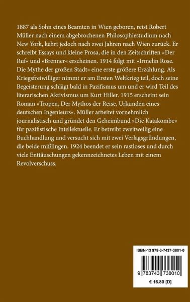 Robert Müller: Flibustier. Ein KulturbildErstdruck: Wien, Interterritorialer Verlag »Renaissance«, 1922.Neuausgabe.Herausgegeben von Karl-Maria Guth.Berlin 2020.Der Text dieser Ausgabe wurde behutsam an die neue deutsche Rechtschreibung angepasst.Umschlaggestaltung von Thomas Schultz-Overhage unter Verwendung des Bildes: Egon Schiele, Porträt des Robert Müller, 1918.Gesetzt aus der Minion Pro, 11 pt.Über den Autor:1887 als Sohn eines Beamten in Wien geboren, reist Robert Müller nach einem abgebrochenen Philosophiestudium nach New York, kehrt jedoch nach zwei Jahren nach Wien zurück. Er schreibt Essays und kleine Prosa, die in den Zeitschriften »Der Ruf« und »Brenner« erscheinen. 1914 folgt mit »Irmelin Rose. Die Mythe der großen Stadt« eine erste größere Erzählung. Als Kriegsfreiwilliger nimmt er am Ersten Weltkrieg teil, doch seine Begeisterung schlägt bald in Pazifismus um und er wird Teil des literarischen Aktivismus um Kurt Hiller. 1915 erscheint sein Roman »Tropen, Der Mythos der Reise, Urkunden eines deutschen Ingenieurs«. Müller arbeitet vornehmlich journalistisch und gründet den Geheimbund »Die Katakombe« für pazifistische Intellektuelle. Er betreibt zweitweilig eine Buchhandlung und versucht sich mit zwei Verlagsgründungen, die beide mißlingen. 1924 beendet er sein rastloses und durch viele Enttäuschungen gekennzeichnetes Leben mit einem Revolverschuss.