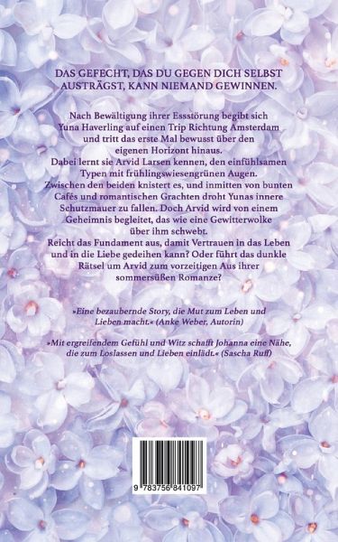 Nach Bewältigung ihrer Essstörung begibt sich Yuna Haverling auf einen Trip Richtung Amsterdam und tritt das erste Mal bewusst über den eigenen Horizont hinaus. Dabei lernt sie Arvid Larsen kennen, den einfühlsamen Typen mit frühlingswiesengrünen Augen.Zwischen den beiden knistert es, und inmitten von bunten Cafés und romantischen Grachten droht Yunas innere Schutzmauer zu fallen. Doch Arvid wird von einem Geheimnis begleitet, das wie eine Gewitterwolke über ihm schwebt.Reicht das Fundament aus, damit Vertrauen in das Leben und in die Liebe gedeihen kann? Oder führt das dunkle Rätsel um Arvid zum vorzeitigen Aus ihrer sommersüßen Romanze?