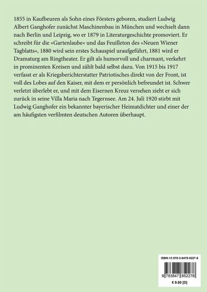 Ludwig Ganghofer: Fliegender Sommer. Erzählungen Lesefreundlicher Großdruck in 16-pt-Schrift Großformat, 210 x 297 mm Berliner Ausgabe, 2021 Durchgesehener Neusatz mit einer Biografie des Autors bearbeitet und eingerichtet von Theodor Borken Erstdruck der Sammlung von Erzählungen unter dem Titel »Fliegender Sommer«: 1892. Erstdruck der Sammlung in vorliegender Form: Berlin, Grote, 1917. Inhaltsverzeichnis: »Goldi-Goldi«. Der Sonnenstrahl. Der blinde Passagier. Die Blüten des Lebens. Der Wildbach. Der Letzte. Sag' mir. Der Herrgottspfänder. Die Liebe Gottes. Frierende Blumen. Die Zitherspieler. An Bord der »Möwe«. Die verliebten Brüder. Neues Leben. Das Truden-Auge. Eine Frühlingsnacht. Wasser. Das Hagelwetter. Eine alte Geschichte. Der neue Leonhardt. Kongress im Himmel. Der Zahltag des Rieschentoni. Der Text dieser Ausgabe wurde behutsam an die neue deutsche Rechtschreibung angepasst. Umschlaggestaltung von Thomas Schultz-Overhage unter Verwendung des Bildes: Theodore Rousseau, Landschaftsstudie, 1830. Gesetzt aus der Minion Pro, 16 pt. Henricus - Edition Deutsche Klassik GmbH Über den Autor: 1855 in Kaufbeuren als Sohn eines Försters geboren, studiert Ludwig Albert Ganghofer zunächst Maschinenbau in München und wechselt dann nach Berlin und Leipzig, wo er 1879 in Literaturgeschichte promoviert. Er schreibt für die »Gartenlaube« und das Feuilleton des »Neuen Wiener Tagblatts«, 1880 wird sein erstes Schauspiel uraufgeführt, 1881 wird er Dramaturg am Ringtheater. Er gilt als humorvoll und charmant, verkehrt in prominenten Kreisen und zählt bald selbst dazu. Von 1915 bis 1917 verfasst er als Kriegsberichterstatter Patriotisches direkt von der Front, ist voll des Lobes auf den Kaiser, mit dem er persönlich befreundet ist. Schwer verletzt überlebt er, und mit dem Eisernen Kreuz versehen zieht er sich zurück in seine Villa Maria nach Tegernsee. Am 24. Juli 1920 stirbt mit Ludwig Ganghofer ein bekannter bayerischer Heimatdichter und einer der am häufigsten verfilmten deutschen Autoren überhaupt.