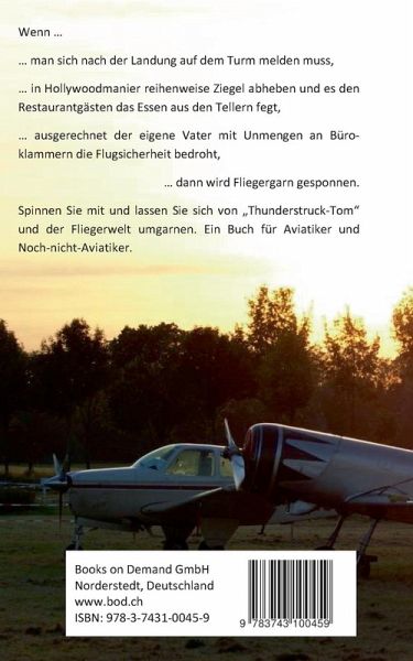 Wenn man sich nach der Landung auf dem Turm melden muss, in hollywoodmanier reihenweise Ziegel abheben, es den Restaurantgästen das Essen aus den Tellern fegt und ausgerechnet der eigene Vater mit Unmengen an Büroklammern die Flugsicherheit bedroht, dann wird Fliegergarn gesponnen. Spinnen sie mit und lassen sie sich von Thunderstruck-Tom und der Fliegerwelt umgarnen. Ein Buch für Aviatiker und Noch-nicht-Aviatiker.