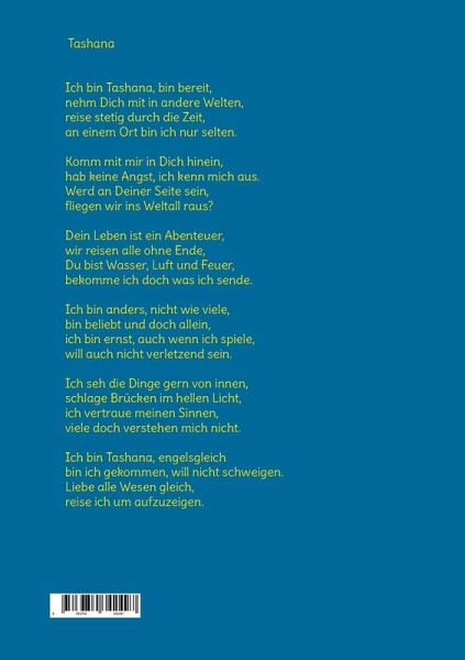 Tashana ist eine Zeitreisende, ein Fliegerkind, ein Wesen wie wir und doch ganz anders. In Form von gut verständlichen Gedichten erzählt sie von Liebe, Vertrauen und Verlangen. Sie ist sich ihrer selbst bewusst geworden, hat das gesamte Wissen nicht nur in sich, sondern kann es jederzeit abrufen, sie ist erwacht, erleuchtet und gekommen um zu helfen. Sie ist gekommen um uns allen klar zu machen, dass wir wie sie sind, reines Bewusstsein und verbunden mit allen Antworten auf alle Fragen. Das wir unbegrenzt sind, allwissend, entstanden aus einem göttlichen Gedanken, kommend aus einer unbewußten Vollkommenheit, auf die Reise geschickt mit Hilfe von Materie und Körpern um durch die Erfahrungen vieler Leben in die bewußte Vollkommenheit zu gehen. Es zahlt sich aus sich auf diese magische Reise einzulassen, denn in jedem von uns steckt Tashana.