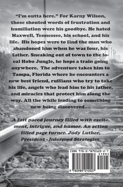 Karny Wilson was abandoned by his father at age 4. He hates Maxwell, Tennessee, school, and most of his friends who live with a father and mother. He has been teased and made fun of too long making him a tough young man to deal with. Learning to fight back has built a reputation of being someone no one wants to cross. His life has gotten to hard and has no joy. He decides to leave Maxwell, his older sister Martha, his mother, and all the bad memories, which were many. He goes to the local Hobo Jungle and waits for a train going anywhere. He wants to find his father and tell him how much he hates him for leaving. While waiting in the cainbrake for the opportunity to grab an empty boxcar, he is accosted by two rough looking hobos. These hobos turn out to be more than vagrants. They lead him to his father. He also makes a new best friend, Bobby Leonard. Later, as the two approach Tampa, ruffians show up trying to take their lives. There are many other problamatic situations. But the most wonderful thing happened, he met the love of his life, Naomi. She is the daughter of the owner of the carnaval/circus where Karny and Bobby find jobs, and Karny's dad. Not only is Naomi stunning to see, but talented beyound belief. Her acrobatic professional skills has been placed on hold by her father, Big Billy, due to a misfortunate accident that took the life of his wife, Naomi's mom. But change is in the air, as is love, danger, near life-taking accidents, and more drama than one can often handle.