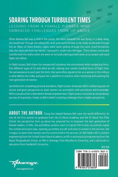 Soaring Through Turbulent Times Lessons from a female pioneer who embraced challenges from up above When Barbara Bell was a child in the sixties, she often dreamed she was flying. In a deep sleep, she would soar through the rolling hills, with arms outstretched, as her body accelerated through the air. Many of these dreamy nights were spent gliding through the same cloud formations that she observed from her family's backyard in small-town Michigan. These dreams eventually transformed into reality when she went on to build a distinguished career as an aviator and naval flight test officer. In Flight Lessons, Bell shares the unexpected turbulence she encountered while navigating thirty-five different types of US and allied aircraft, tallying over sixteen hundred hours of flight time. Her perseverance to push past the limits that were often placed on her as a woman in the military is what defines her today and gives her a platform to stand on when mentoring and the next generation of women. Sprinkled with compelling personal anecdotes, Flight Lessons showcases Bell's trailblazing years of service and gives perspective on what women can accomplish with persistence and knowledge. With a narrative that is drenched in female empowerment, Flight Lessons chronicles an extraordinary journey of inspiration, thanks to Bell's belief in tackling challenges from a higher perspective.