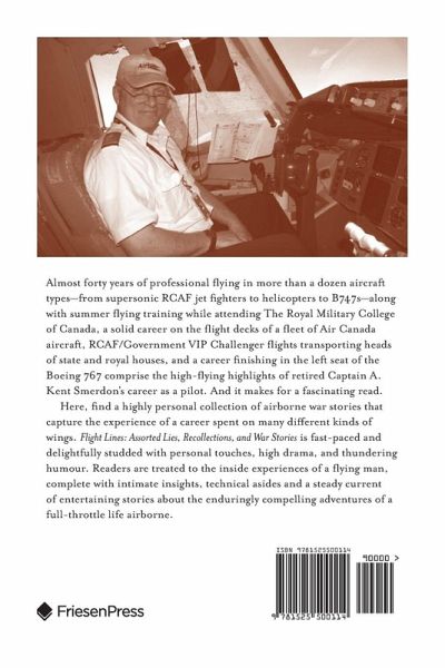Almost forty years of professional flying in more than a dozen aircraft types-from supersonic RCAF jet fighters to helicopters to B747s-along with summer flying training while attending The Royal Military College of Canada, a solid career on the flight decks of a fleet of Air Canada aircraft, RCAF/Government VIP Challenger flights transporting heads of state and royal houses, and a career finishing in the left seat of the Boeing 767 comprise the high-flying highlights of retired Captain A. Kent Smerdon's career as a pilot. And it makes for a fascinating read. Here, find a highly personal collection of airborne war stories that capture the experience of a career spent on many different kinds of wings. Flight Lines: Assorted Lies, Recollections, and War Stories is fast-paced and delightfully studded with personal touches, high drama, and thundering humour. Readers are treated to the inside experiences of a flying man, complete with intimate insights, technical asides and a steady current of entertaining stories about the enduringly compelling adventures of a full-throttle life airborne.