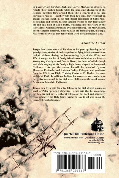 Jack and Carrie MacGregor struggle to rebuild their broken family while the uprooting challenges of the Roaring Twenties blow around them like a swarm of social and spiritual tornadoes. Together with their two sons, they resurrect an ancient chicken ranch in the high desert of California. Both failure and victory become familiar friends as they forge a new life and take hold of God's truths, whispered into their ears by the Holy Spirit. Against a rural and aviation backdrop, the MacGregors, like the ancient Hebrews, must walk an old familiar path, making a way for themselves as they follow their Lord into an unknown land.