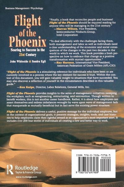 Flight of the Phoenix delivers a useful, positive message for the individual employee. It presents strategies, insights, tools and case histories to help employees claim their rightful reward as an organisations most important asset. It includes over 200 true stories of individuals all creating a new and better way to work. it presents strategies, insights, tools and case histories to help employees claim their rightful reward as an organisations most important asset. it includes over 200 true stories of individuals all creating a new and better way to work. provides insights to the series of management initiatives sweeping the workplace, such as re-engineering, restructuring and reinvention.