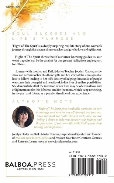 'Flight of The Spirit' is a deeply inspiring real-life story of one woman's journey through the trauma of personal loss and grief to love and upliftment. Flight of The Spirit shows that if our inner knowing guides us, our worst tragedies can be the catalyst for our greatest realisations and support for others. Journey with mother and Reiki Master Teacher Jocelyn Oades, as she shares an account of her childhood gifts and her story of the unimaginable loss to follow, leading to her life's destiny of helping thousands of people overcome their own grief and heartbreak to live lives of endless possibilities. She demonstrates that the intention of our lives may be of eternal love and enlightenment for this lifetime, and for the many, which keep renewing, in the past and future, as a parallel timeline of our experiences.