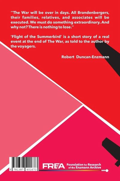 "The war will be over in days. All Brandenbergers, their families, relatives, and associates will be executed. We must do something extraordinary. And why not? There's nothing to lose." Flight of the Summerbird tells of a little-known event at the end of WW II, told here by Robert Duncan-Enzmann as told to him by the passengers of the Summerbird condor airplane. A must-read for scholars of WW II.