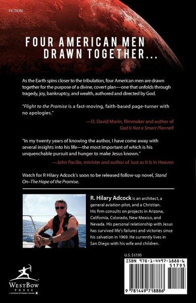 As the Earth spins closer to the tribulation, four American men are drawn together for the purpose of a divine, covert plan-one that unfolds through tragedy, joy, bankruptcy, and wealth, authored and directed by God. "Flight to the Promise is a fast-moving, faith-based page-turner with no apologies." -D. David Morin, filmmaker and author of God Is Not a Smart PlanneR "In my twenty years of knowing the author, I have come away with several insights into his life-the most important of which is his unquenchable pursuit and hunger to make Jesus known." -John Pacilio, minister and author of Just as It Is in Heaven Watch for R Hilary Adcock's soon to be released follow-up novel, Stand On-The Hope of the Promise.