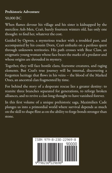 Prehistoric Adventure 50,000 BC When flames devour his village and his sister is kidnapped by the merciless Ash-Men, Craô, barely fourteen winters old, has only one thought: to find her, whatever the cost. Guided by Ogwen, a mysterious tracker with a troubled past, and accompanied by his cousin Dorn, Craô embarks on a perilous quest through unknown territories. His path crosses with Bear Claw, an enigmatic young woman whose face bears the marks of a predator and whose origins are shrouded in mystery. Together, they will face hostile clans, fearsome creatures, and raging elements. But Craô's true journey will be internal, discovering a forgotten heritage that flows in his veins - the blood of the Marked Ones, an ancestral clan fragmented by time. For behind the story of a desperate rescue lies a greater destiny: to reunite three branches separated for generations, to reforge broken alliances, and to revive a clan long thought to have vanished forever. In this first volume of a unique prehistoric saga, Maximilien Cade plunges us into a primordial world where survival depends as much on the skill to shape flint as on the ability to forge bonds stronger than stone.