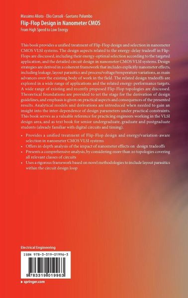 This book provides a unified treatment of Flip-Flop design and selection in nanometer CMOS VLSI systems. The design aspects related to the energy-delay tradeoff in Flip-Flops are discussed, including their energy-optimal selection according to the targeted application, and the detailed circuit design in nanometer CMOS VLSI systems. Design strategies are derived in a coherent framework that includes explicitly nanometer effects, including leakage, layout parasitics and process/voltage/temperature variations, as main advances over the existing body of work in the field. The related design tradeoffs are explored in a wide range of applications and the related energy-performance targets. A wide range of existing and recently proposed Flip-Flop topologies are discussed. Theoretical foundations are provided to set the stage for the derivation of design guidelines, and emphasis is given on practical aspects and consequences of the presented results. Analytical models and derivationsare introduced when needed to gain an insight into the inter-dependence of design parameters under practical constraints. This book serves as a valuable reference for practicing engineers working in the VLSI design area, and as text book for senior undergraduate, graduate and postgraduate students (already familiar with digital circuits and timing).