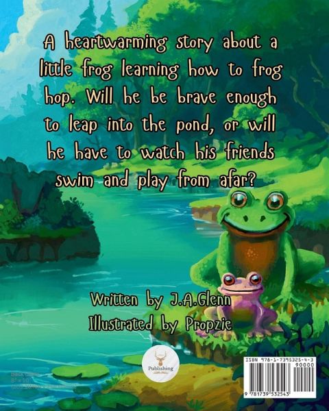 This heartwarming tale is about a little frog learning how to frog hop. Will he be brave enough to leap into the pond, or will he have to watch his friends swim and play from afar? This fabulously illustrated children's book was created to bring joy and whimsy into young minds while giving them a sweet message about confidence. This book will bring a joyous adventure of learning, colours, rhyming and a message of confidence. It's bright and colourful with carefully selected fonts and pictures to ensure easy reading and full engagement!