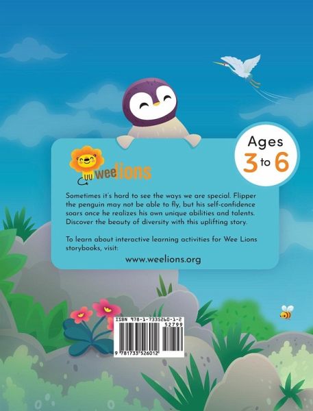 Sometimes it's hard to see the ways we are special. Flipper the penguin may not be able to fly, but his self-confidence soars once he realizes his own unique abilities and talents. Discover the beauty of diversity with this uplifting story. For interactive learning exercise of this story, please visit www.weelions.org.