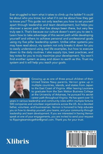 Ever struggled to learn what it takes to climb up the ladder? It could be about who you know, but what if it can be about how they get to know you? This guide not only teaches you how to set yourself apart through leadership and team development, but helps you discover a secret path that has always been there, but very few truly see it. That's because our culture doesn't want you to see it. Learn how to take advantage of this secret path while developing yourself and others to achieve personal and professional goals using my five pillar leadership system. Unlike other systems you may have read about, my system not only breaks it down for you to easily understand using real life examples, but how to execute down to the daily routines. I also supply tips, best practices, and key notes for you to truly maximize your development. You won't find another system as easy and down to earth as this. Trust my system and it will help you reach your goals.