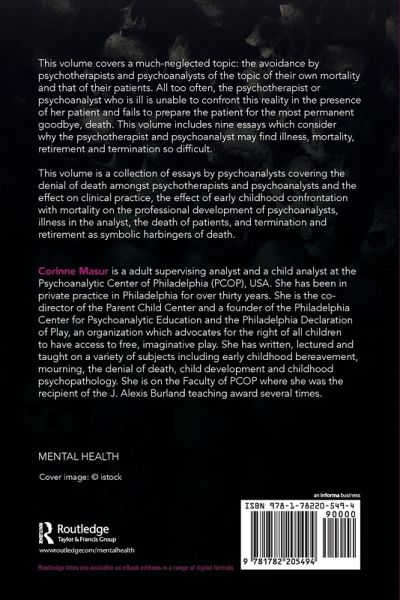 This volume is a collection of essays by psychoanalysts covering the denial of death amongst psychotherapists and psychoanalysts and its effect on clinical practice, the effect of early childhood confrontation with mortality on the professional development of psychoanalysts.