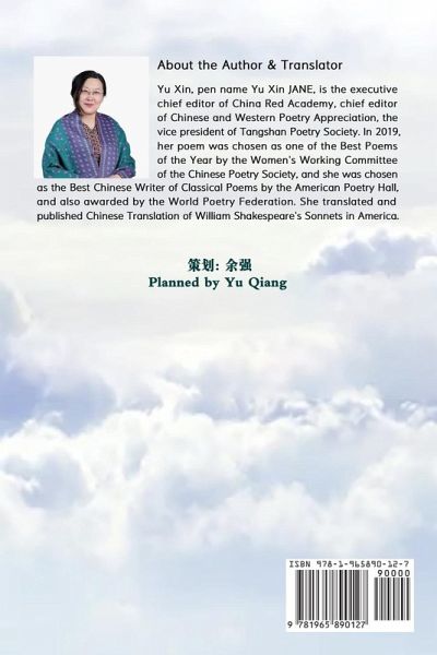"Floating Clouds: Chinese-English Rhymed Verse", a remarkable and comprehensive bilingual poetry collection, is presented by Ms. Yu Xin, a Chinese female poet and translator, following her work "Chinese Translation of William Shakespeare's Sonnets". This poetry collection is divided into four chapters, which are like four distinct and captivating landscapes, each with its own allure. The first chapter comprises bilingual poems. The author centers on family ties and conveys the profound and heart-wrenching pain of losing loved ones through her words. The comprehensive part documents the author's profound musings and sentiments regarding life, nature, and human existence. The second chapter is akin to a treasury of poetry, selectively including the author's recent translations of Chinese classical regulated verse and poetry. The syllables and rhymes are meticulously crafted, striving to present the author's original intentions and showcase the charm of Chinese classical regulated verse and poetry. The final chapter is as if opening a gateway to classic English poems from Europe and America. The author endeavors to surmount language barriers, enabling readers to savor a distinctive poetic essence. It is believed that this book can serve as a bridge connecting readers of different languages and cultures, allowing all to jointly relish the beautiful sentiments of poetry. PrefacePoetry is the voice from the soul. It is the elaborate carving and deep exploration of emotions, and the ceaseless pursuit of beauty. Over the long years, I regarded many bits and pieces that once touched my soul and settled in my heart as the sweet nourishment for myself, and compiled them into this bilingual poetry collection, "Floating Clouds: Chinese-English Rhymed Verse".The content of this poetry collection is divided into three chapters. The first chapter consists of the bilingual poems I created with devotion, among which the part about family affection is the most significant. Family affection is the core of my life, like the warmest harbour in life. The deaths of my loved ones have brought me endless grief, just like a magical and huge net, making me trapped time and again and unable to break free. Just as it is said, "The most heart-rending thing is parting." Only by having words flowing from my pen can I relieve the pressure and extricate myself from the predicament. When composing these bilingual poems, I strived to present the rhythm and wonderful charm of poetry. The comprehensive part contains various sentiments about life, nature and human experiences, using the language of poetry to remember those moments that touch my heart.The second chapter includes the recent translations of classical regulated verse and poetry I have made in recent years. Tang Poetry and Song Ci are the shining pearls in Chinese culture, containing boundless wisdom and emotions.I did my best to pursue the syllables and rhymes. When translating, I strived to present the author's meaning with a better effect, so that more people can appreciate the charm of Chinese classical regulated verse and poetry.