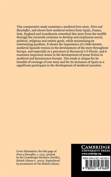 This comparative 1997 study examines a medieval love story, Floire and Blancheflor, and shows how writers from Spain, France, Italy, England and Scandinavia reworked the story from the twelfth to the sixteenth century to develop and emphasize social, political, religious and artistic goals, while maintaining its entertaining qualities. It shows the importance of a little-known medieval Spanish version to the development of the story throughout Europe, and especially as a precursor to Boccaccio's Il Filocolo, and examines important issues of the development of prose fiction in medieval and Renaissance Europe. This study is unique for its breadth of coverage of one story and for its inclusion of Spain as a significant participant in the development of medieval narrative.