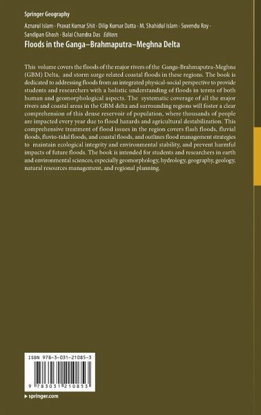 This volume covers the floods of the major rivers of the Ganga-Brahmaputra-Meghna (GBM) Delta, and storm surge related coastal floods in these regions. The book is dedicated to addressing floods from an integrated physical-social perspective to provide students and researchers with a holistic understanding of floods in terms of both human and geomorphological aspects. The systematic coverage of all the major rivers and coastal areas in the GBM delta and surrounding regions will foster a clear comprehension of this dense reservoir of population, where thousands of people are impacted every year due to flood hazards and agricultural destabilization. This comprehensive treatment of flood issues in the region covers flash floods, fluvial floods, fluvio-tidal floods, and coastal floods, and outlines flood management strategies to maintain ecological integrity and environmental stability, and prevent harmful impacts of future floods. The book is intended for students and researchers in earth and environmental sciences, especially geomorphology, hydrology, geography, geology, natural resources management, and regional planning.