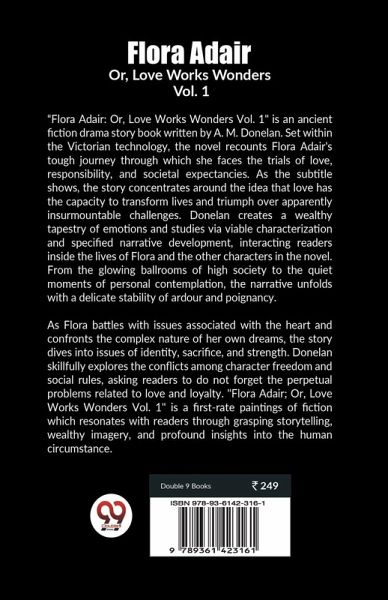 A. M. Donelan, the renowned author of "Flora Adair; Or, Love Works Wonders," was a prolific writer recognized for his gripping storytelling and deep examination of human emotions. Donelan was born with a high literary sensibility and created sophisticated novels that resonated with readers of all ages. "Flora Adair; Or, Love Works Wonders" exemplifies Donelan's mastery of the romantic genre, telling a compelling story of love, sacrifice, and endurance. Donelan explores the complexity of human connections via Flora Adair's journey, creating characters with depth and honesty. Donelan's prose is distinguished by its beauty and eloquence, transporting readers to the vividly depicted realm of Victorian society. With great attention to detail, he recreates the sights, sounds, and feelings of the time, immersing readers in a deeply complex story. Donelan, a master of the romance genre, expertly navigates the complexities of love and desire, weaving in themes of passion, obligation, and societal expectations. Flora Adair's stories provide insight into the transformational power of love, revealing how it can transcend difficulties and accomplish wonders in people's lives.