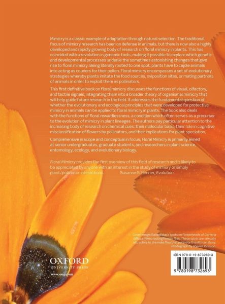 1: Introduction 2: The evolution and maintenance of floral rewardlessness 3: Generalised food deception 4: Batesian food-source mimicry 5: Sexual mimicry 6: Oviposition site mimicry 7: Special cases 8: Future directions in floral mimicry research