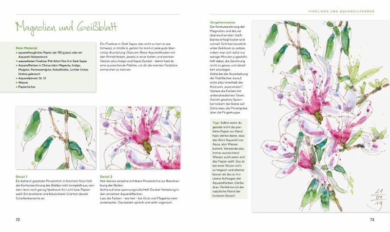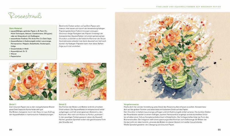 Beim Urban Sketching werden alltägliche Szenen mit lockeren Linien und akzentuierenden Farbflächen im Skizzenbuch festgehalten. Diesem Trend folgt nun ein neuer: das Floral Sketching. Erfahren Sie, wie Sie inspirierende Blumen- und Blütenmotive finden, diese von leichter Hand skizzieren und mit den richtigen Farbtönen zu künstlerischem Leben erwecken können. Mit vielen floralen Zeichnungen, die Lust machen, die Grundlagen des Skizzierens erlernen. Botanical Sketchnotes - step by step vom Zeichendozenten erklärt.