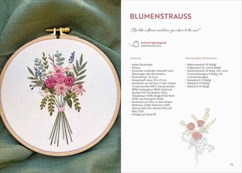 Entdecken Sie mit dem Buch "Florale Stickerei" die zauberhafte Welt der Blumenstickerei und lassen Sie Ihrer Kreativität freien Lauf. Unser Stickbuch mit vielen tollen Motiven von @mama_stickt bietet allen Stick-Fans eine Fülle an Inspirationen, um kunstvolle Blumenmotive auf den Stickrahmen zu zaubern.