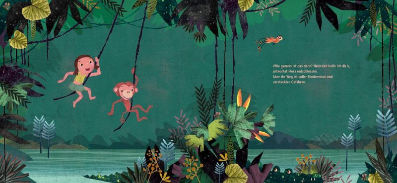 Flora hat es satt. Die ganze Stadt um sie herum versinkt in eintönigem Grau. Hier fehlt eindeutig Farbe! Aber woher soll die kommen? Da fliegt ein kleiner Vogel über den Balkon. Das Päckchen, das er fallen lässt, bringt eine merkwürdige Wurzel zum Vorschein. Als Flora sie gießt, sprießen Blätter aus der Knolle und nach kurzer Zeit wird der Balkon zum farbenprächtigen Dschungel! Klar, dass hier auch Affen leben. Und einer von ihnen braucht dringend Floras Hilfe. Was für ein Erlebnis ... oder war das alles nur ein Traum? - Ein Dschungelabenteuer für Großstadtkinder - Traumhaft bunte Bilder bringen Farbe in jeden grauen Alltag - Macht die Städte grüner!