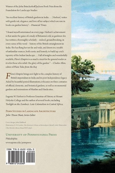 Like their penchant for clubs, cricket, and hunting, the planting of English gardens by the British in India reflected an understandable need on the part of expatriates to replicate home as much as possible in an alien environment. In Flora's Empire, Eugenia W. Herbert argues that more than simple nostalgia or homesickness lay at the root of this "garden imperialism," however. Drawing on a wealth of period illustrations and personal accounts, many of them little known, she traces the significance of gardens in the long history of British relations with the subcontinent. To British eyes, she demonstrates, India was an untamed land that needed the visible stamp of civilization that gardens in their many guises could convey. Colonial gardens changed over time, from the "garden houses" of eighteenth-century nabobs modeled on English country estates to the herbaceous borders, gravel walks, and well-trimmed lawns of Victorian civil servants. As the British extended their rule, they found that hill stations like Simla offered an ideal retreat from the unbearable heat of the plains and a place to coax English flowers into bloom. Furthermore, India was part of the global network of botanical exploration and collecting that gathered up the world's plants for transport to great imperial centers such as Kew. And it is through colonial gardens that one may track the evolution of imperial ideas of governance. Every Government House and Residency was carefully landscaped to reflect current ideals of an ordered society. At Independence in 1947 the British left behind a lasting legacy in their gardens, one still reflected in the design of parks and information technology campuses and in the horticultural practices of home gardeners who continue to send away to England for seeds.