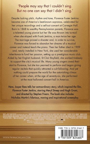 In Florence Foster Jenkins, Jasper Rees tells her extraordinary story, which inspired the film starring Meryl Streep and Hugh Grant, and directed by Stephen Frears. This remarkable book also includes Nicholas Martin's funny, moving and inspirational screenplay.