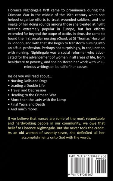 Florence Nightingale first came to prominence during the Crimean War in the middle of the 19th century when she helped organize efforts to treat wounded soldiers, and the image of her doing rounds among those she treated at night became extremely popular in Europe, but her efforts extended far beyond the scope of battle. In time, she came to found the first secular nursing school, at St Thomas' Hospital in London, and with that she began to transform nursing into an actual profession. Perhaps not surprisingly, in conjunction with nursing, Nightingale was a social reformer who advocated for the advancement of women in all areas of life, from healthcare to poverty, and she bolstered her work with voluminous writings on behalf of her causes. Inside you will read about...Nursing Dolls and Dogs Leading a Double Life Travel and Depression Heading to the Crimean War More than the Lady with the Lamp Final Years and Death And much more! If we believe that nurses are some of the most respectable and hardworking people in our community, we owe that belief to Florence Nightingale. But she never took the credit. As an old woman of seventy-seven, she deflected all her accomplishments onto God with the words.
