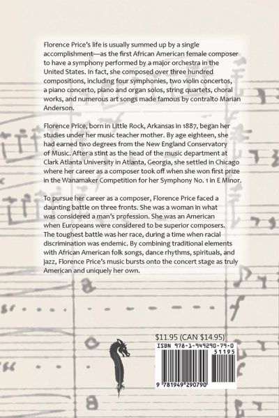 Florence Price's life is usually summed up by a single accomplishment-as the first African American female composer to have a symphony performed by a major orchestra in the United States. In fact, she composed over three hundred compositions, including four symphonies, two violin concertos, a piano concerto, piano and organ solos, string quartets, choral works, and numerous art songs made famous by contralto Marian Anderson. Florence Price, born in Little Rock, Arkansas in 1887, began her studies under her music teacher mother. By age eighteen, she had earned two degrees from the New England Conservatory of Music. After a stint as the head of the music department at Clark Atlanta University in Atlanta, Georgia, she settled in Chicago where her career as a composer took off when she won first prize in the Wanamaker Competition for her Symphony No. 1 in E Minor. To pursue her career as a composer, Florence Price faced a daunting battle on three fronts. She was a woman in what was considered a man's profession. She was an American when Europeans were considered to be superior composers. The toughest battle was her race, during a time when racial discrimination was endemic. By combining traditional elements with African American folk songs, dance rhythms, spirituals, and jazz, Florence Price's music bursts onto the concert stage as truly American and uniquely her own.