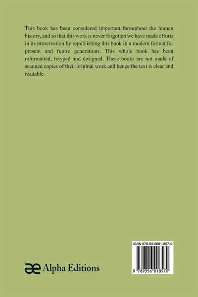 This book has been considered important throughout the human history, and so that this work is never forgotten we have made efforts in its preservation by republishing this book in a modern format for present and future generations. This whole book has been reformatted, retyped and designed. These books are not made of scanned copies and hence the text is clear and readable.