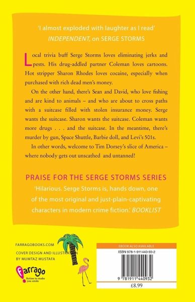 Introducing Serge Storms, America’s most cheerful serial killer. Local trivia buff Serge loves eliminating jerks and pests. His drug-addled partner Coleman loves cartoons. Hot stripper Sharon Rhodes loves cocaine, especially when purchased with rich dead men's money. On the other hand, there's Sean and David, who love fishing and are kind to animals – and who are about to cross paths with a suitcase filled with stolen insurance money. Serge wants the suitcase. Sharon wants the suitcase. Coleman wants more drugs . . . and the suitcase. In the meantime, there's murder by gun, Space Shuttle, Barbie doll, and Levi's 501s. In other words, welcome to Tim Dorsey's slice of America – where nobody gets out unscathed and untanned!