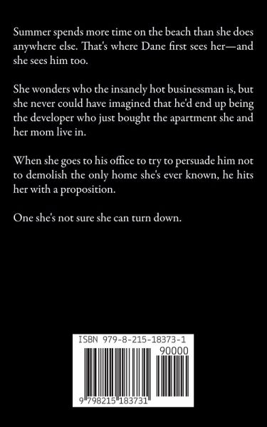 Summer spends more time on the beach than she does anywhere else. That's where Dane first sees her-and she sees him too. She wonders who the insanely hot businessman is, but she never could have imagined that he'd end up being the developer who just bought the apartment she and her mom live in. When she goes to his office to try to persuade him not to demolish the only home she's ever known, he hits her with a proposition. One she's not sure she can turn down.