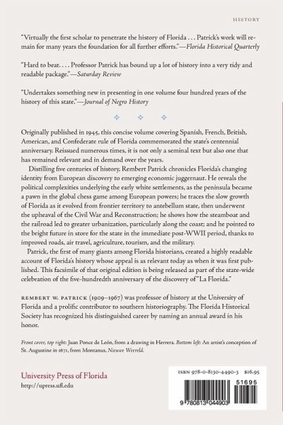 First published in 1945, this concise history of Florida commemorated the state’s centennial anniversary and was the very first book issued by what was then called the University of Florida Press. Reissued numerous times, its status as a seminal text in our state’s history has never been questioned. Even today, copies are difficult to find. As part of the state-wide celebration of the five hundredth anniversary of the discovery of “La Florida,” we are pleased to reissue this facsimile edition of one of the most cherished books ever published by the University Press of Florida. In this highly readable account, Rembert Patrick, the first of many giants among Florida historians, summarises Florida’s history under the flags of Spain, France, Great Britain, the Confederacy, and the United States. Distilling five centuries of history, Patrick chronicles Florida’s evolving identity: from discovery and settlement to its role under the changing fortunes of European powers, from establishment as a territory to an antebellum state, from the Civil War and Reconstruction to an urban, post-World War II economic juggernaut.