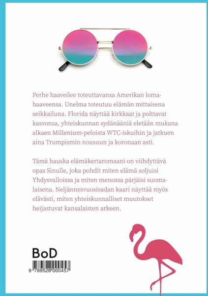 ¿Miksi se Trump pitää tuota lippuaan? Piruuttaanko?¿ Vauhdikas suomalaisperheen seikkailu USAssa alkaen trumpismin juurisyistä ja päätyen Palm Beachin palmujen katveeseen. Setä Samulin supervaltion sydänäänet, Floridan aurinkoisuus ja myrskyisyys koetaan perin pohjin 25 vuoden aikana- palohaavat voidellaan ja vapauden rajat hahmottuvat. Monipuolinen romaani USAn elämästä ja lähihistoriasta suomalaisen näkökulmasta. Kirja on myös oiva opas omaa rohkeaa elämänmuutostaan harkitsevalle.