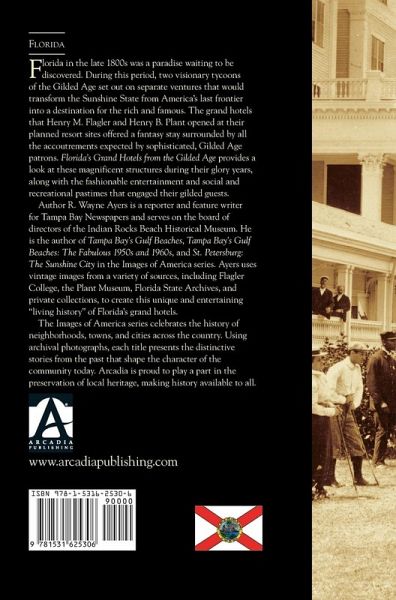 Florida in the late 1800s was a paradise waiting to be discovered. During this period, two visionary tycoons of the Gilded Age set out on separate ventures that would transform the Sunshine State from America's last frontier into a destination for the rich and famous. The grand hotels that Henry M. Flagler and Henry B. Plant opened at their planned resort sites offered a fantasy stay surrounded by all the accoutrements expected by sophisticated, Gilded Age patrons. Florida's Grand Hotels from the Gilded Age provides a look at these magnificent structures during their glory years, along with the fashionable entertainment and social and recreational pastimes that engaged their gilded guests.