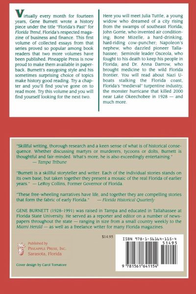 Virtually every month for fourteen years, Gene Burnett wrote a history piece under the title ""Florida's Past"" for Florida Trend, Florida's respected magazine of business and finance. This first volume of collected essays from that series proved so popular among book readers that two more volumes have been published. Pineapple Press is now proud to make them available in paperback. Burnett's easygoing style and his sometimes surprising choice of topics make history good reading. Each volume divides Florida's people and events into Achievers and Pioneers, Villains and Characters, Heroes and Heroines, War and Peace, and Calamities and Social Turbulence. Read a chapter and you'll find you've gone on to read more. Read this volume and you'll find yourself looking for the next two. Next in series > > See all of the books in this series
