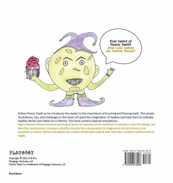 Follow Flossio Teeth as he introduces the reader to the importance of brushing and flossing teeth. The simple illustrations, tips, and challenges in this book will spark the imagination of readers and help them to cultivate healthy dental care habits for a lifetime. This book contains Spanish translations. Siga a Dientes Flossio mientras presenta al lector la importancia de cepillarse los dientes y usar hilo dental. Las sencillas ilustraciones, consejos y desafíos de este libro despertarán la imaginación de los lectores y les ayudarán a cultivar hábitos saludables de cuidado dental para toda la vida. Este libro contiene traducciones al inglés.
