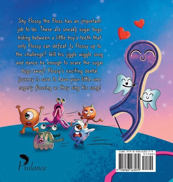 Shy Flossy the Floss has an important job to do. There are sneaky sugar bugs hiding between a little boy's teeth that only Flossy can defeat. Is Flossy up to the challenge? Will his jiggle wiggle song and dance be enough to scare the sugar bugs away? Flossy's exciting dental journey is sure to have your little one eagerly flossing as they sing his song!