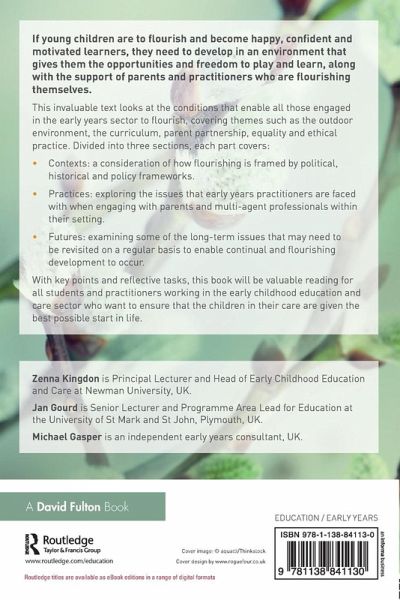 If young children are to flourish and become happy, confident and motivated learners, they need to develop in an environment that gives them the opportunities and freedom to play and learn, along with the support of parents and practitioners who are flourishing themselves. This invaluable text looks at the conditions that enable all those engaged in the early years sector to flourish, covering themes such as the outdoor environment, the curriculum, parent partnership, equality and ethical practice. Divided into three sections, each part covers: Concepts: A consideration of how flourishing is framed by political, historical and policy frameworks. Practices: Exploring the issues that early years practitioners are faced with when engaging with parents and multi-agent professionals within their setting. Futures: Examining some of the long-term issues that may need to be revisited on a regular basis to enable continual and flourishing development to occur. With key points and reflective tasks, this book will be valuable reading to all students and practitioners working in the early childhood education and care sector who want to ensure that the children in their care are given the best possible start in life.