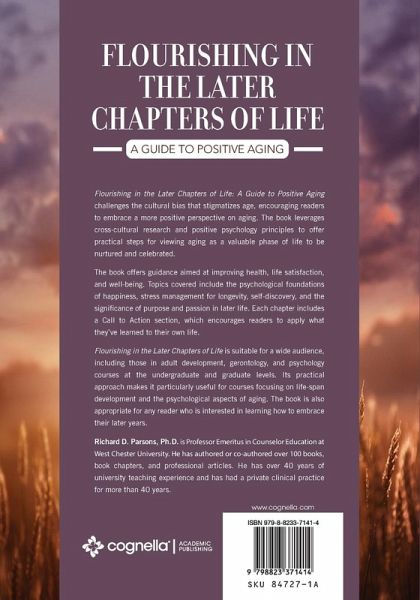 Flourishing in the Later Chapters of Life: A Guide to Positive Aging challenges the cultural bias that stigmatizes age, encouraging readers to embrace a more positive perspective on aging. The book leverages cross-cultural research and positive psychology principles to offer practical steps for viewing aging as a valuable phase of life to be nurtured and celebrated. The book offers guidance aimed at improving health, life satisfaction, and well-being. Topics covered include the psychological foundations of happiness, stress management for longevity, self-discovery, and the significance of purpose and passion in later life. Each chapter includes a Call to Action section, which encourages readers to apply what they've learned to their own life. Flourishing in the Later Chapters of Life is suitable for a wide audience, including those in adult development, gerontology, and psychology courses at the undergraduate and graduate levels. Its practical approach makes it particularly useful for courses focusing on life-span development and the psychological aspects of aging. The book is also appropriate for any reader who is interested in learning how to embrace their later years.
