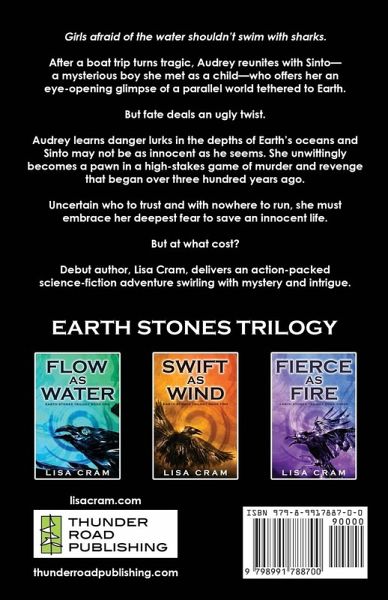 For Fans of V.E. Schwab's Shades of Magic series. Sometimes the deepest secrets lie beneath the surface... When marine biologist Audrey Grey survives a deadly orca attack that claims her research partner, she believes her life can't get any stranger-until she awakens on a tropical beach unlike any place on Earth. In this realm called Merluma, the laws of evolution have taken a startling turn. Mythical creatures of lore and humans with extraordinary adaptations inhabit this parallel world, challenging Audrey's scientific understanding. As she desperately searches for answers, she's drawn to a mysterious figure, Sinto, who is strangely familiar. Audrey discovers shocking connections between Sinto and her past. Family secrets surface like ancient shipwrecks, and the true circumstances of her mother's drowning death a decade earlier may hold the key to her destiny. Flow As Water is the first book in Lisa Cram's mesmerizing debut, the Earth Stones Trilogy, an otherworldly adventure that plunges readers into a world where parallel evolution, ancient conflict, and the irresistible pull of fate converge beneath the waves.