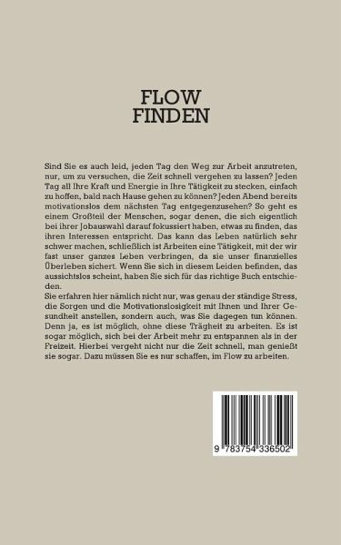 Sind Sie es auch leid, jeden Tag den Weg zur Arbeit anzutreten, nur, um zu versuchen, die Zeit schnell vergehen zu lassen? Jeden Tag all Ihre Kraft und Energie in Ihre Tätigkeit zu stecken, einfach zu hoffen, bald nach Hause gehen zu können? Jeden Abend bereits motivationslos dem nächsten Tag entgegenzusehen? So geht es einem Großteil der Menschen, sogar denen, die sich eigentlich bei ihrer Jobauswahl darauf fokussiert haben, etwas zu finden, das ihren Interessen entspricht. Das kann das Leben natürlich sehr schwer machen, schließlich ist Arbeiten eine Tätigkeit, mit der wir fast unser ganzes Leben verbringen, da sie unser finanzielles Überleben sichert. Wenn Sie sich in diesem Leiden befinden, das aussichtslos scheint, haben Sie sich für das richtige Buch entschieden.Sie erfahren hier nämlich nicht nur, was genau der ständige Stress, die Sorgen und die Motivationslosigkeit mit Ihnen und Ihrer Gesundheit anstellen, sondern auch, was Sie dagegen tun können. Denn ja, es ist möglich, ohne diese Trägheit zu arbeiten. Es ist sogar möglich, sich bei der Arbeit mehr zu entspannen als in der Freizeit. Hierbei vergeht nicht nur die Zeit schnell, man genießt sie sogar. Dazu müssen Sie es nur schaffen, im Flow zu arbeiten.