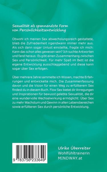 Sexualität als spannendste Form von PersönlichkeitsentwicklungObwohl ich meinen Sex abwechslungsreich gestaltete, blieb die Zufriedenheit irgendwann immer mehr aus. Als sich dann sogar Unlust einstellte, fragte ich mich: Kann das schon alles gewesen sein? Ich suchte Antworten und fand heraus: Es gibt einen Zusammenhang zwischen Sex und Persönlichkeit. Für mehr Spaß im Bett ist die eigene Entwicklung ausschlaggebend und diese kann sogar über Sex erfolgen.Über mehrere Jahre sammelte ich Wissen, machte Erfahrungen und entwickelte mich. Die Zusammenfassung davon und die Vision für einen Weg zu erfüllterem Sex findest du in diesem Buch. Flow Sex bietet dir Anregungen und Inspirationen für deinen Weg zu bewusst gelebter Sexualität, die dir eine wundervolle Wechselwirkung ermöglicht: Über Sex zu mehr Wachstum und Gewinn in allen Lebensbereichen sowie erfüllteren Sex durch persönliche Entwicklung.