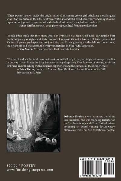 Deborah Kaufman was born and raised in San Francisco. She was founding Director of the San Francisco Jewish Film Festival before becoming an award-winning documentary filmmaker. This is her first collection of poetry.