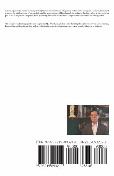 Zamir is a genetically modified soldier patrolling the vast desert for raiders who prey on civilian settler convoys on a planet rich in natural resources. An incident in one of his patrols brings him into a hidden world just beneath the surface of the planet where he has to play his part as one of the princess's properties, ruled by a strictly matriarchal society, that is a target of other clans, tribes, and warring raiders. This fast-paced and action-packed story is a signature of JC Alva's Science fiction works that brings his readers to new worlds and creatures, Love and betrayal, Loyalty and duty, and the resilience of a society born from a cruel past, whose wounds make them never forget.