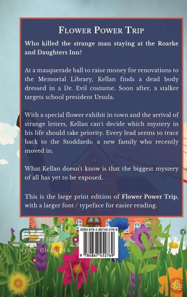 Who killed the strange man staying at the Roarke and Daughters Inn? At a masquerade ball to raise money for renovations to the Memorial Library, Kellan finds a dead body dressed in a Dr. Evil costume. Soon after, a stalker targets school president Ursula. With a special flower exhibit in town and the arrival of strange letters, Kellan can't decide which mystery in his life should take priority. Every lead seems to trace back to the Stoddards: a new family who recently moved in. What Kellan doesn't know is that the biggest mystery of all has yet to be exposed. This is the large print edition of Flower Power Trip, with a larger font / typeface for easier reading.¿