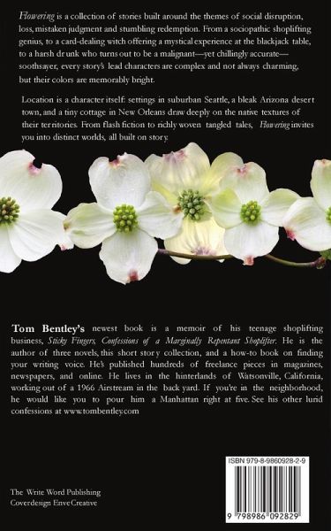 Are you haunted by how one mistake in life might lead to a cascade of troubles that never end? Or how what looks like a minor gesture-from a person or from fate-can be the source of personal redemption? Or how existence can be out-and-out inexplicable, weird, or the source of the gut-busting humor? These stories are doorways into unforgettable characters and situations, and will resonate in your memory. Flowering is a collection of stories built around the themes of loss, social disruption, mistaken judgment and stumbling redemption. From a shoplifting sociopathic genius to a card-dealing witch offering a mystical experience at the blackjack tables to a harsh drunk who turns out to be a malignant-yet chillingly accurate-soothsayer, the story's lead characters are complex and not always charming, but their colors are memorably bright. ¿Location also figures significantly in other stories: settings in lush-but-lost suburban Seattle, a bleak Arizona desert town and a tiny, mysterious cottage in New Orleans all draw deeply on the native textures of their territories. From flash fiction to richly woven tales, Flowering invites you into distinct worlds, all built on story.